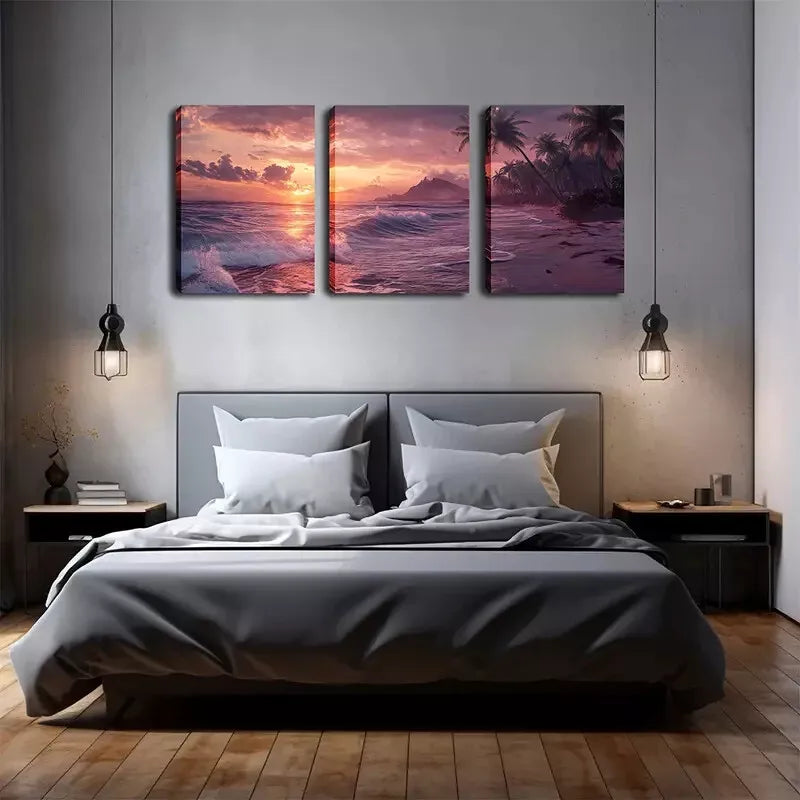 3pcs Crashing Waves, Sunsets, Beaches Wall Art Set Canvas Framed 40x60cm - High Quality Print 100% Australian Made Wall Canvas Ready to Hang
