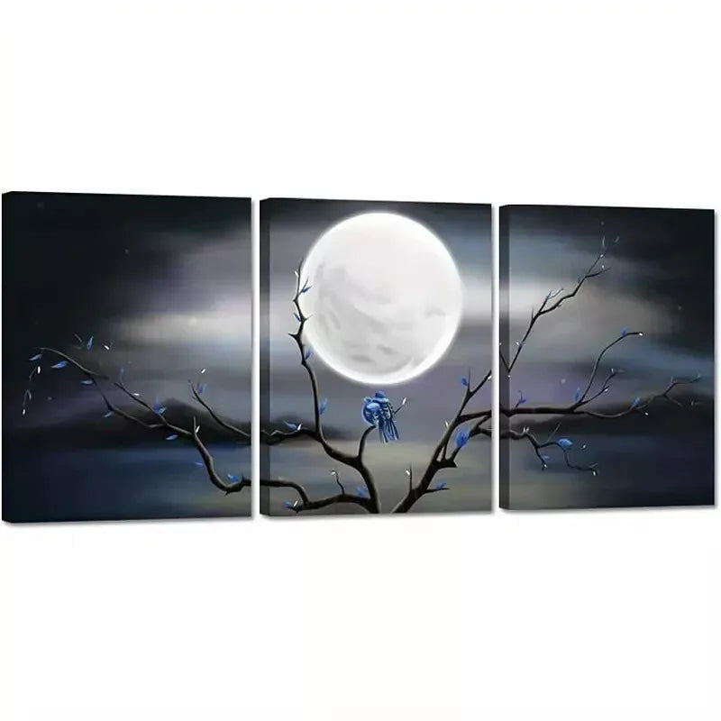 3pcs Creative Elegant Full Moon Love Birds Wall Art Set Canvas Framed 40x60cm - High Quality Print 100% Australian Made Wall Canvas Ready to Hang