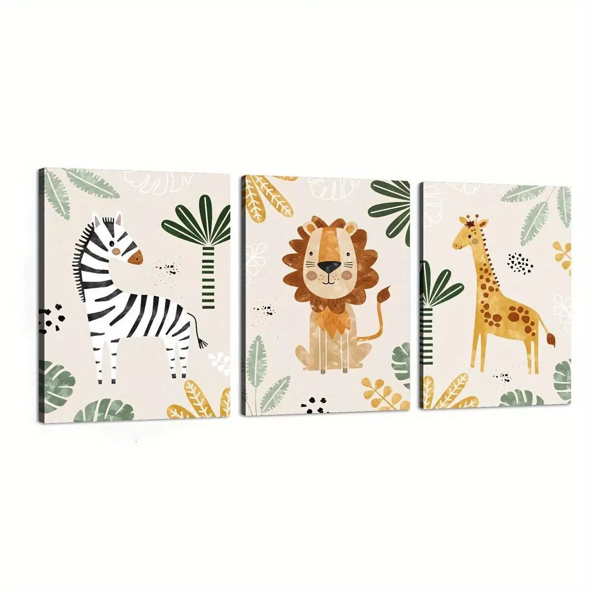 3pcs Creative Elegant Jungle Animal Artwork Wall Art Set Canvas Framed 40x60cm - High Quality Print 100% Australian Made Wall Canvas Ready to Hang