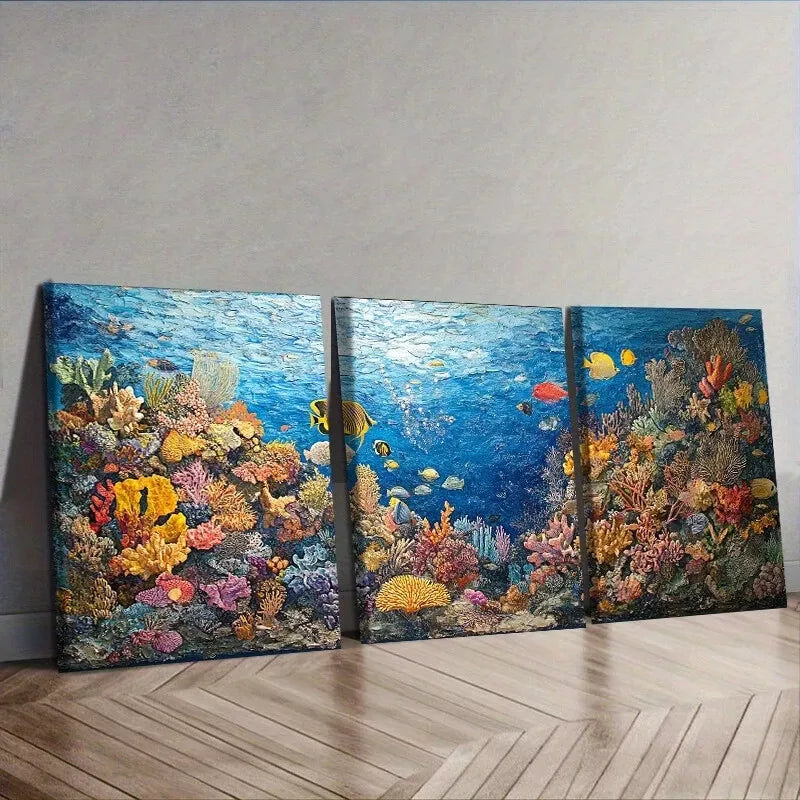 3pcs Creatures Of The Sea Floor Coral Reefs Wall Art Set Canvas Framed 40x60cm - High Quality Print 100% Australian Made Wall Canvas Ready to Hang
