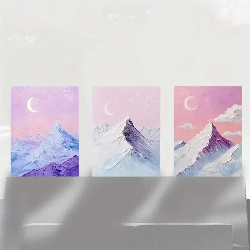 3pcs Crescent Moon Over Mountain Peaks Metal Print Ready to Hang Art