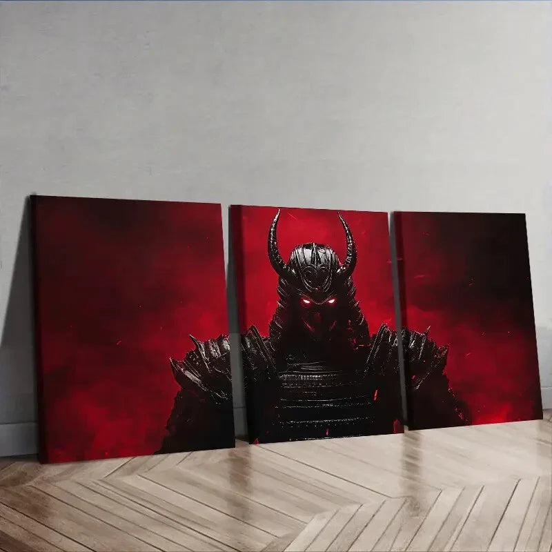 3pcs Crimson Warrior with Black Horns Wall Art Set Canvas Framed 40x60cm - High Quality Print 100% Australian Made Wall Canvas Ready to Hang
