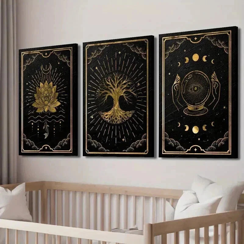 3pcs Crystal Ball with Glowing Eye & Sun Moon Wall Art Set Canvas Framed 40x60cm - High Quality Print 100% Australian Made Wall Canvas Ready to Hang