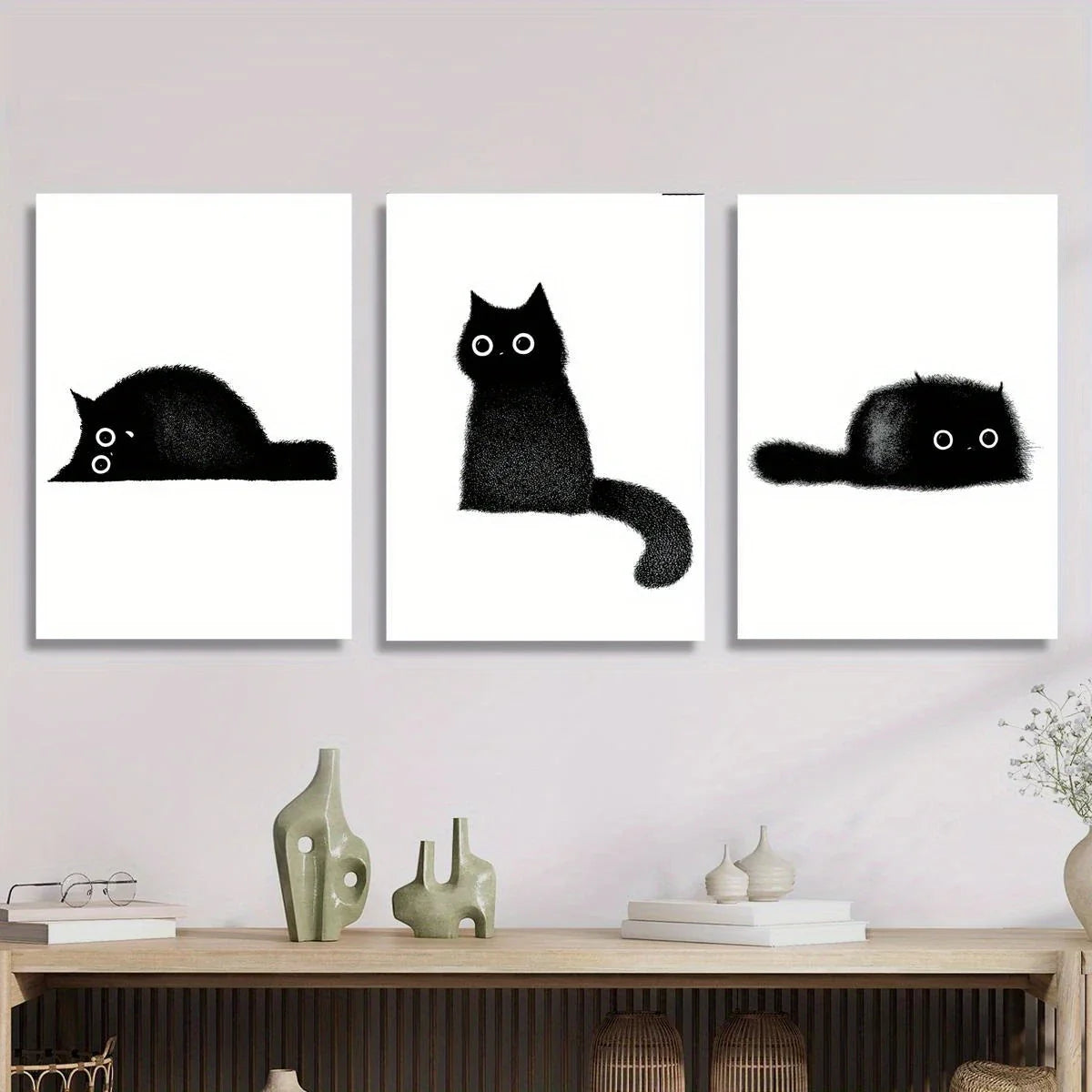 3pcs Cute black cat, black little coal cat, animal Metal Print Ready to Hang Art