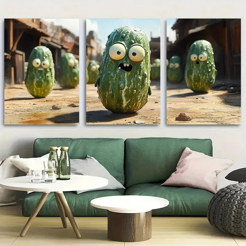 3pcs Cute Cartoon Goofy Pickle Metal Print Ready to Hang Art