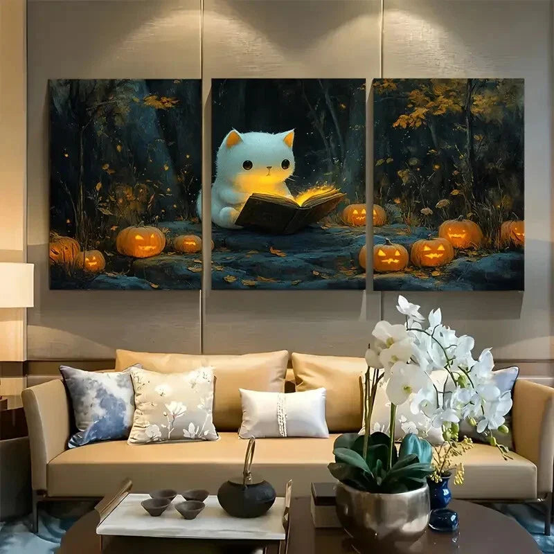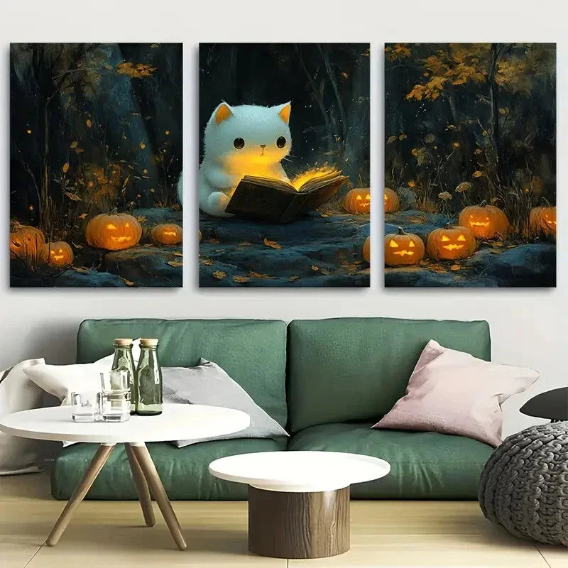 3pcs Cute Cat Reading Pennant Fantasy Vibes Metal Print Ready to Hang Art