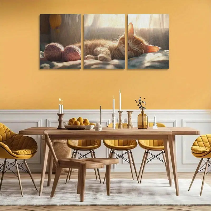 3pcs Cute Cat Sleeping on Bed Vibrant Animal Metal Print Ready to Hang Art