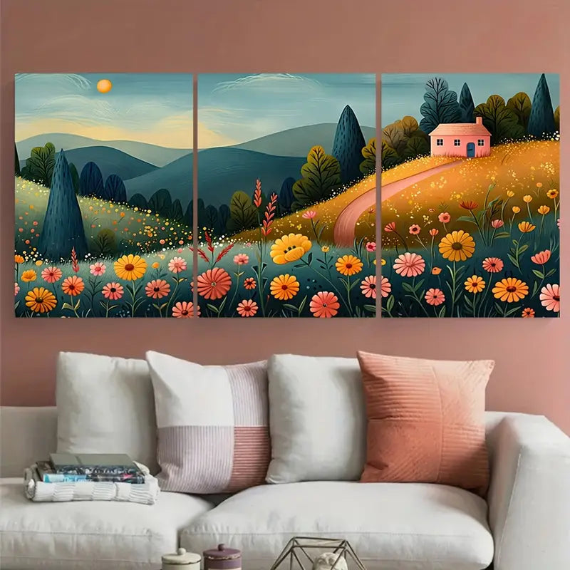 3pcs Cute Colorful Wildflowers Paint Metal Print Ready to Hang Art