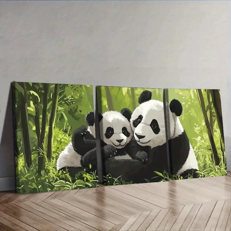3pcs Cute panda family Wall Art Set Canvas Framed 40x60cm - High Quality Print 100% Australian Made Wall Canvas Ready to Hang