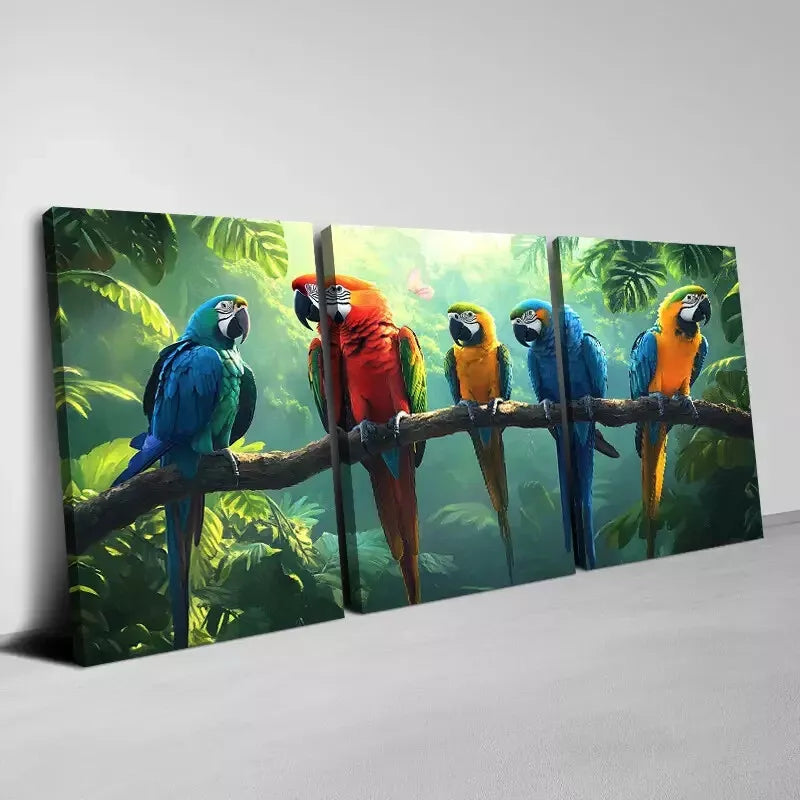 3pcs Cute Parrots on the Branch Greenery Forest Wall Art Set Canvas Framed 40x60cm - High Quality Print 100% Australian Made Wall Canvas Ready to Hang