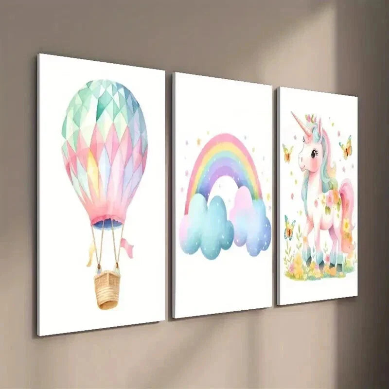 3pcs Cute Pink Unicorn Flowers And Butterflies Wall Art Set Canvas Framed 40x60cm - High Quality Print 100% Australian Made Wall Canvas Ready to Hang