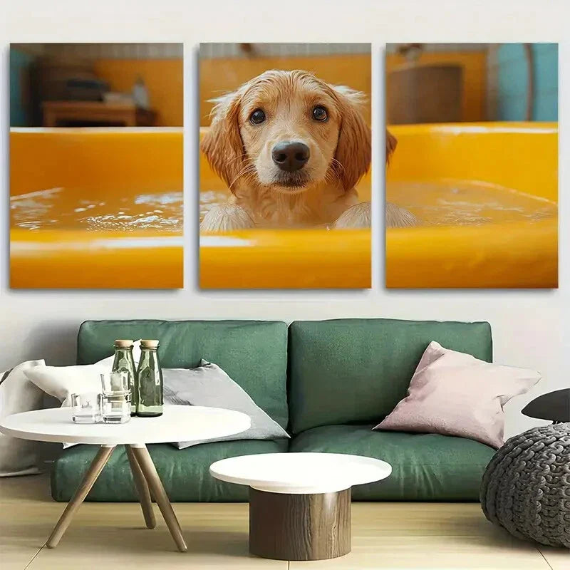 3pcs Cute Playful Golden Retriever Design Metal Print Ready to Hang Art