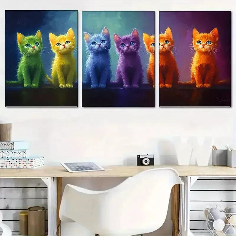3pcs Cute Rainbow Kitten with big bright eyes Wall Art Set Canvas Framed 40x60cm - High Quality Print 100% Australian Made Wall Canvas Ready to Hang