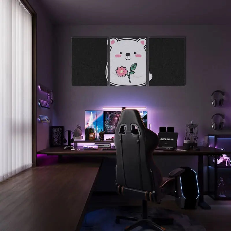 3pcs Cute White Bear Holding Pink Flower Classic Design Metal Print Ready to Hang Art