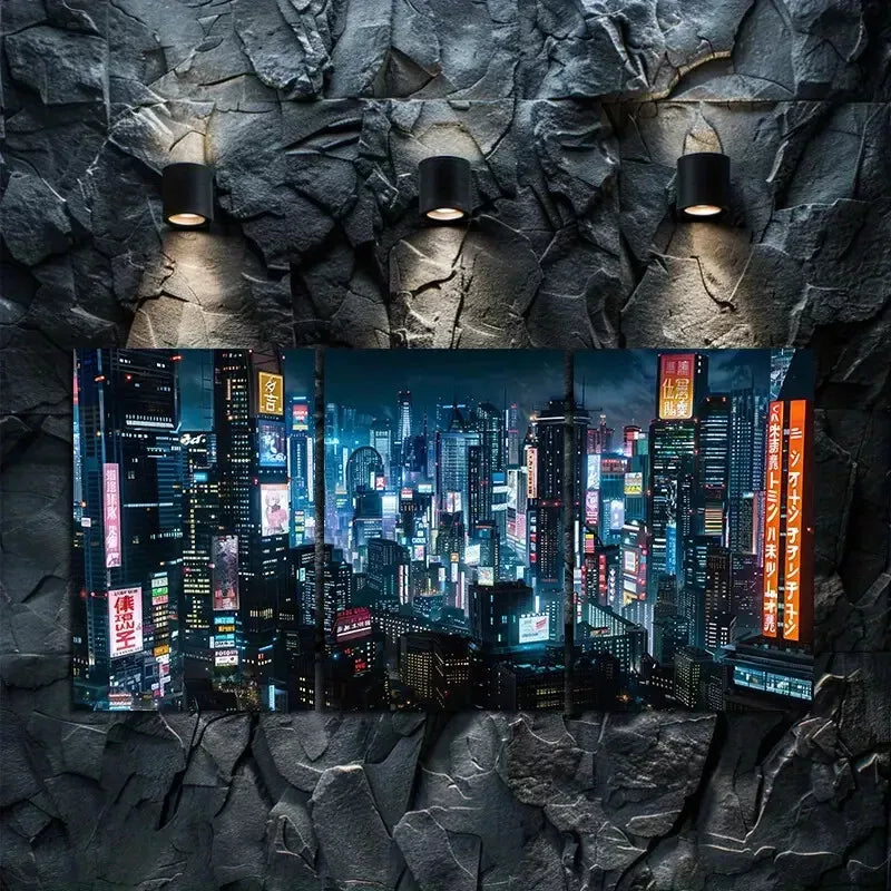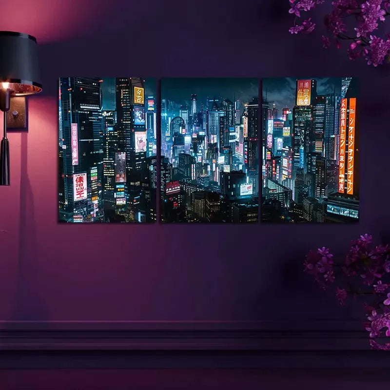 3pcs Cyberpunk City Skyline Canvas Framed 40x60cm - High Quality Print 100% Australian Made Wall Canvas Ready to Hang