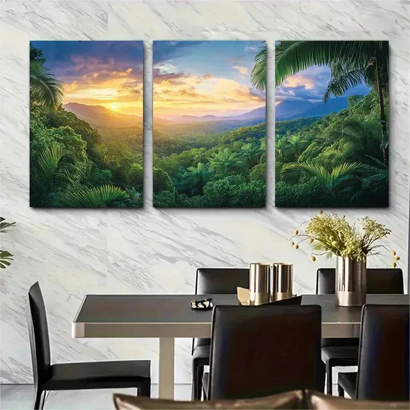 3pcs Daintree Vibrant Sunset & Lush Greenery Metal Print Ready to Hang Art