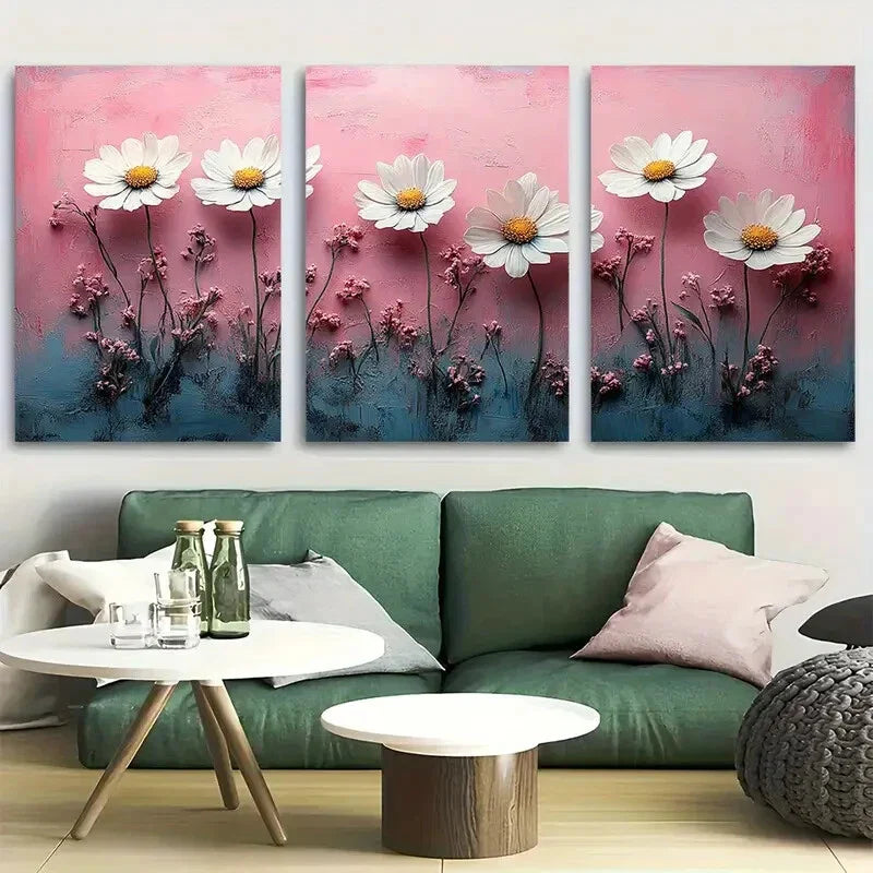 3pcs Daisy Wildflower Rustic Pink Background Metal Print Ready to Hang Art