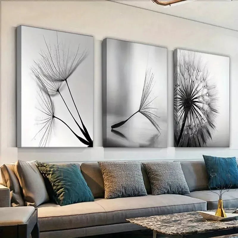 3pcs Dandelion Flower Black & White Canvas Framed 40x60cm - High Quality Print 100% Australian Made Wall Canvas Ready to Hang
