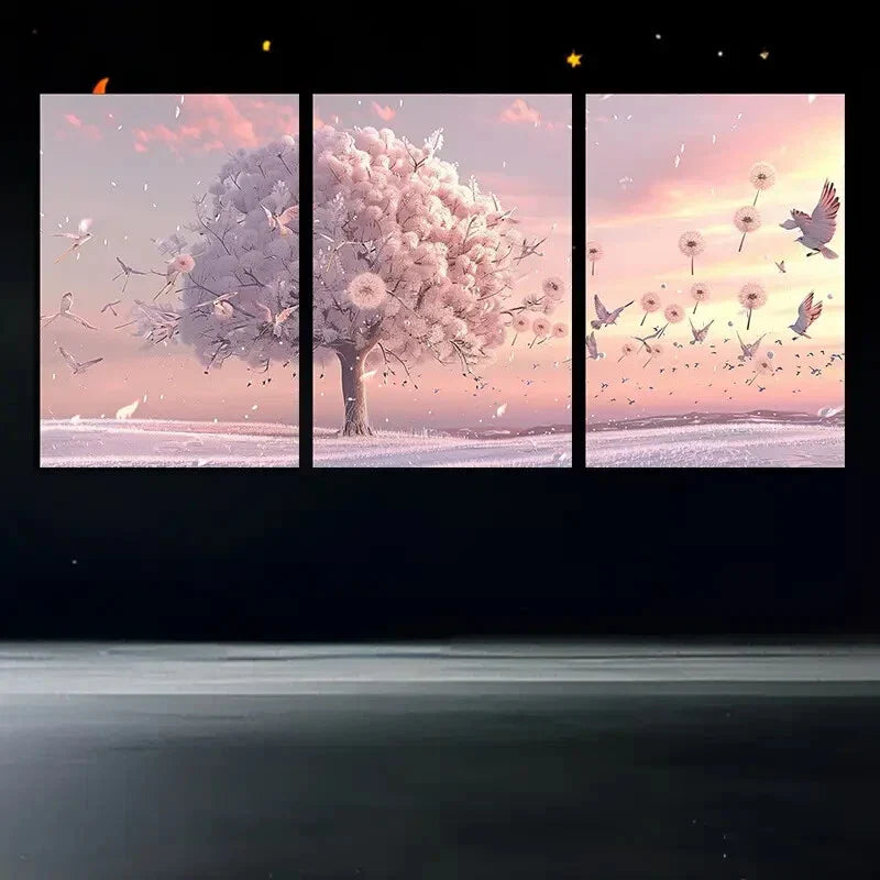 3pcs Dandelion Flying Birds Modern Rose Tree Metal Print Ready to Hang Art