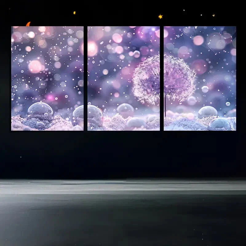 3pcs Dandelion Purple & Pink Bubbles Metal Print Ready to Hang Art