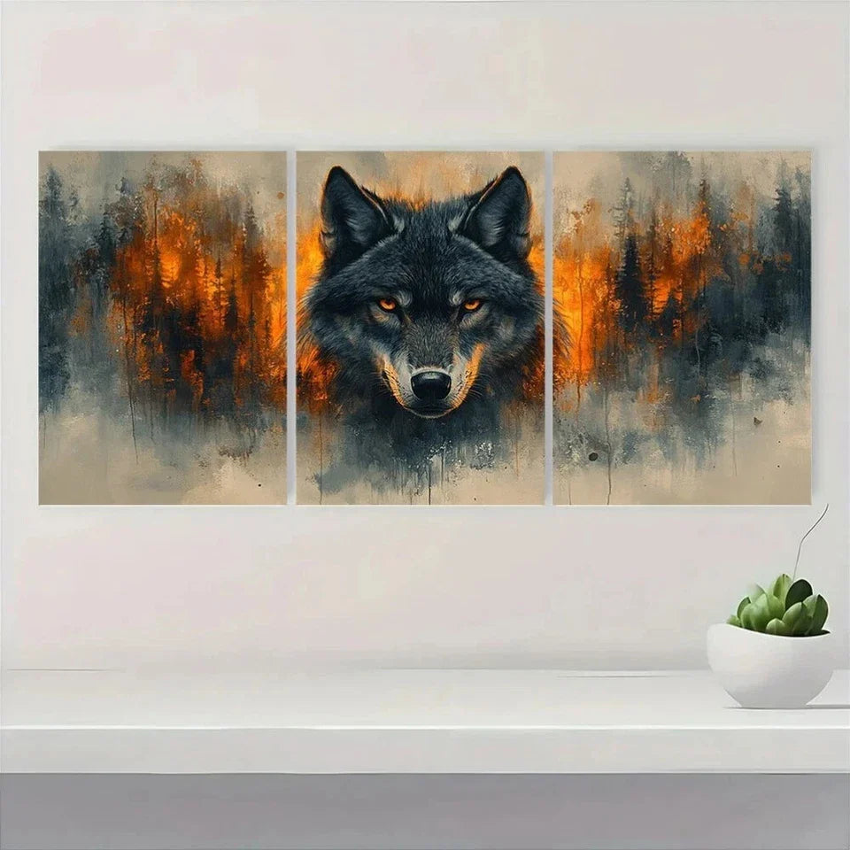 3pcs Dark Fantasy Gothic Wolf Golden Eyes Black Metal Print Ready to Hang Art