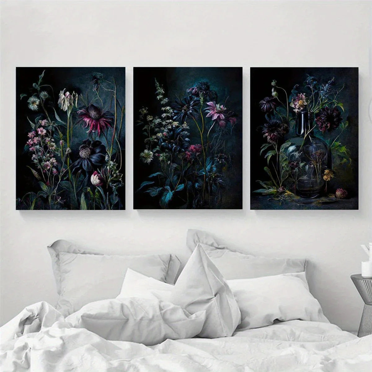 3pcs Dark Florals Painting Classic Design Metal Print Ready to Hang Art