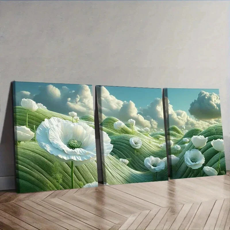 3pcs Deco Modern Contemporary White Poppy Wall Art Set Canvas Framed 40x60cm - High Quality Print 100% Australian Made Wall Canvas Ready to Hang