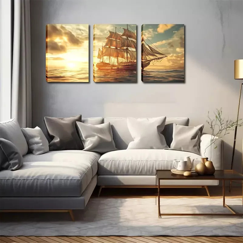 3pcs Decoration, Ancient Galleon Wall Art Set Canvas Framed 40x60cm - High Quality Print 100% Australian Made Wall Canvas Ready to Hang