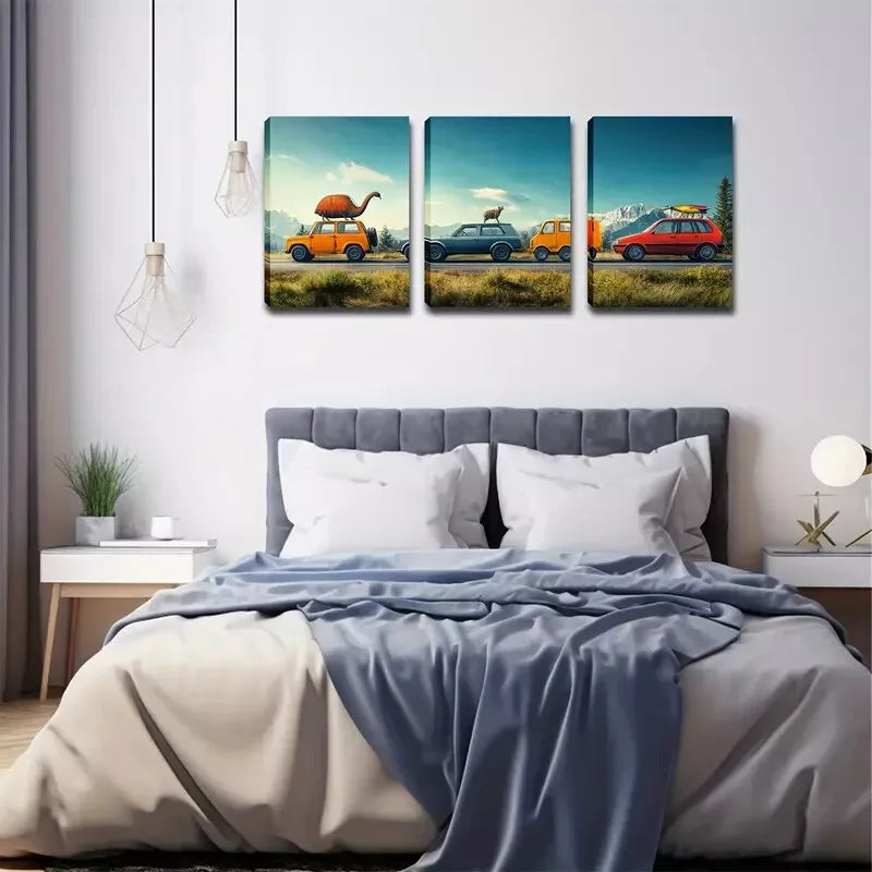 3pcs Decoration, Cute Cars And Animals Wall Art Set Canvas Framed 40x60cm - High Quality Print 100% Australian Made Wall Canvas Ready to Hang