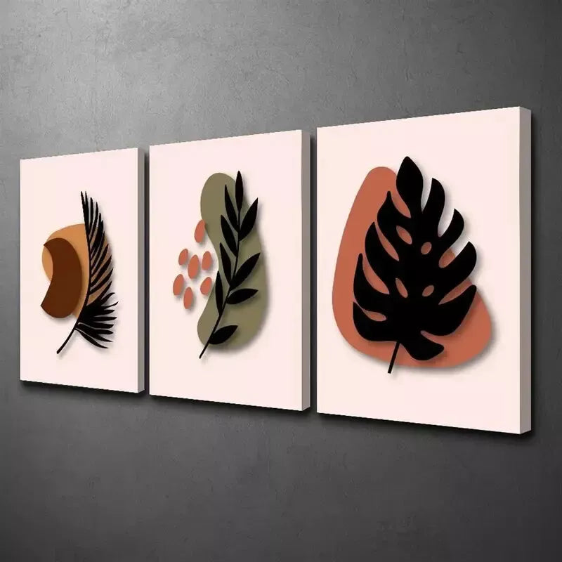 3pcs Decorative Abstract Bohemian Style Leaf Wall Art Set Canvas Framed 40x60cm - High Quality Print 100% Australian Made Wall Canvas Ready to Hang
