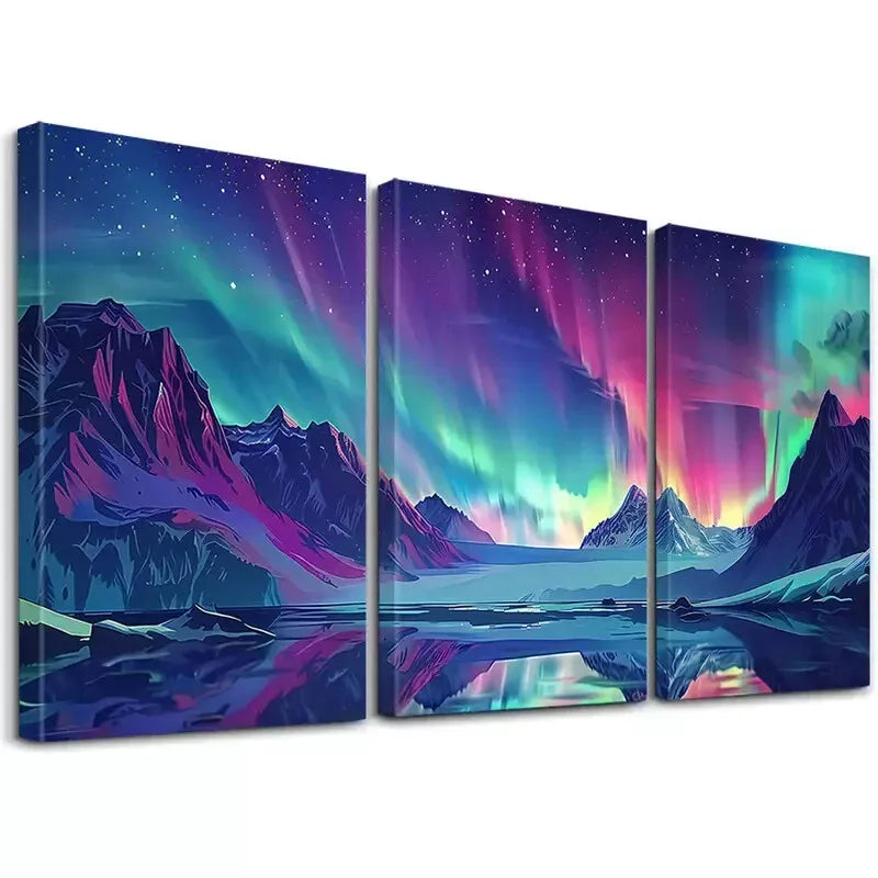 3pcs Decorative Aurora Borealis Icy Mountains Wall Art Set Canvas Framed 40x60cm - High Quality Print 100% Australian Made Wall Canvas Ready to Hang