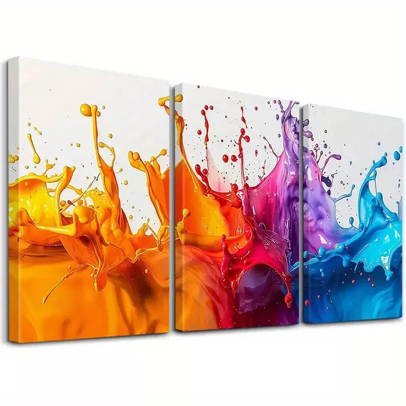 3pcs Decorative Blue And Orange Paint Splash Wall Art Set Canvas Framed 40x60cm - High Quality Print 100% Australian Made Wall Canvas Ready to Hang