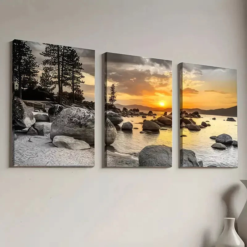 3pcs Decorative Lakeside Natural Scenery Wall Art Set Canvas Framed 40x60cm - High Quality Print 100% Australian Made Wall Canvas Ready to Hang