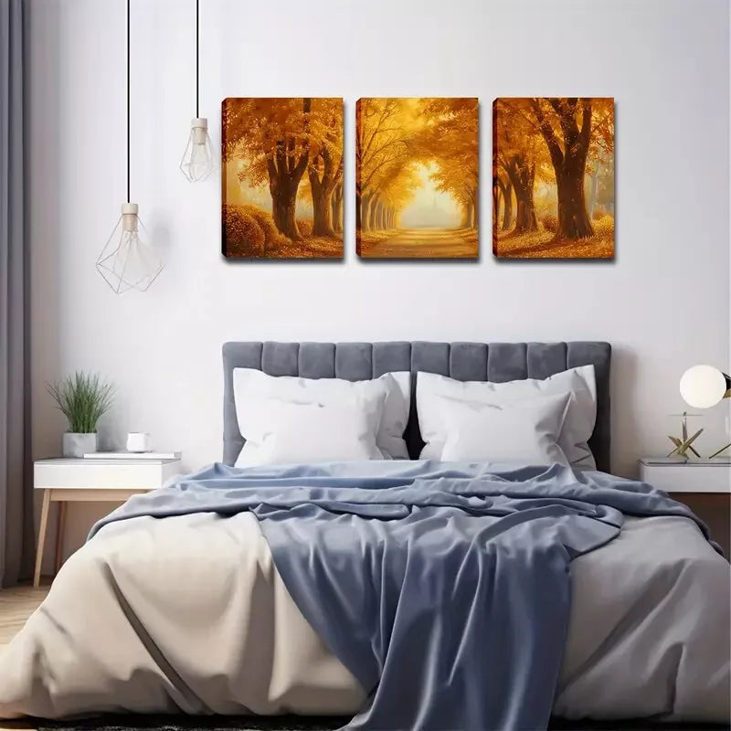 3pcs Deep Yellow Woods, Romantic Roads Wall Art Set Canvas Framed 40x60cm - High Quality Print 100% Australian Made Wall Canvas Ready to Hang