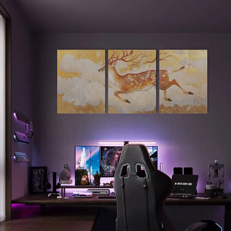 3pcs Deer The Auspicious Deer in Dunhuang Metal Print Ready to Hang Art