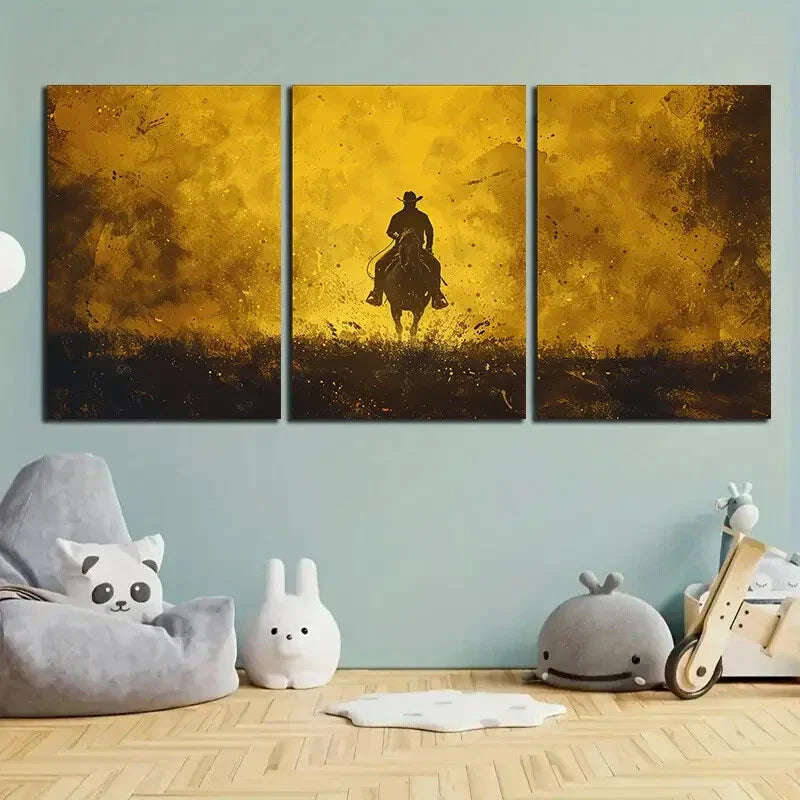 3pcs Denim Man Riding On Horse Metal Print Ready to Hang Art