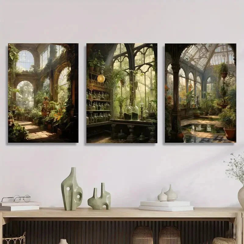 3pcs Depicting a Victorian Botanical Garden, Metal Print Ready to Hang Art