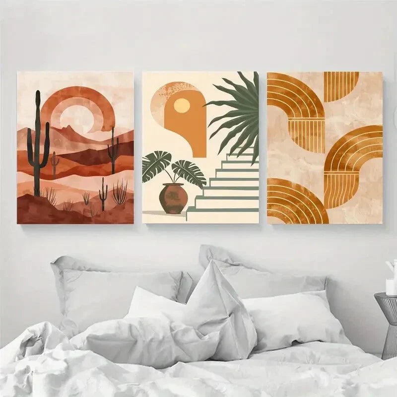 3pcs Desert Oasis & Tropical Botanical Design Metal Print Ready to Hang Art