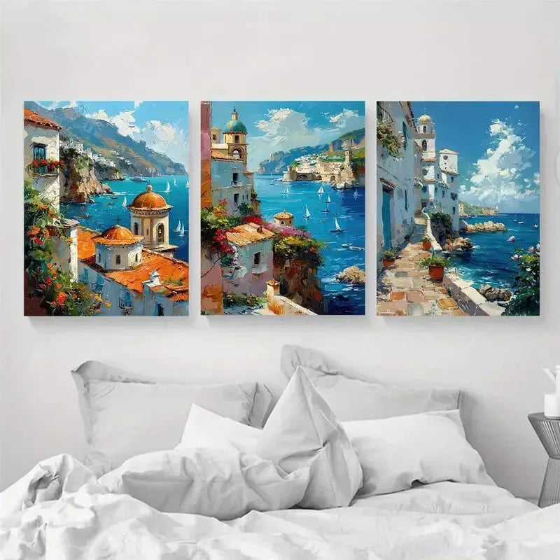 3pcs Italy Coastal Travel Canvas Framed 40x60cm - High Quality Print 100% Australian Made Wall Canvas Ready to Hang