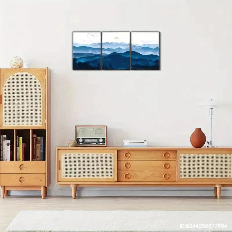 3pcs Distant Mountains and Clouds Blue Mountains Metal Print Ready to Hang Art