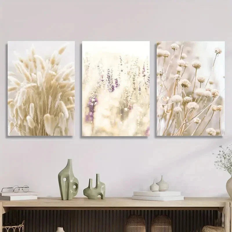 3pcs ,Dogtail Grass & Flowers - Classic Modern Metal Print Ready to Hang Art