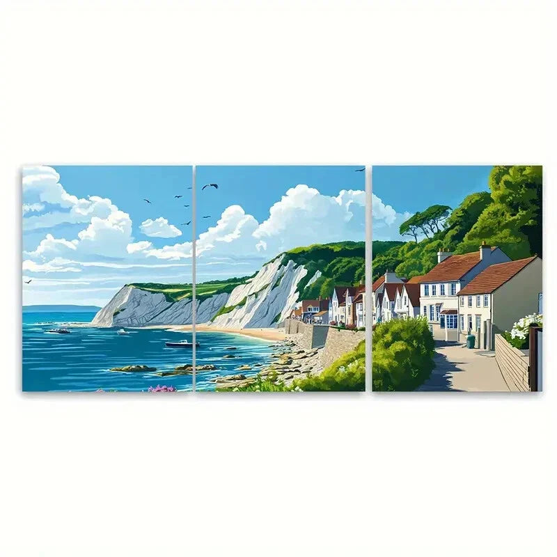 3pcs Dorset Coast Scene with White Cliffs Metal Print Ready to Hang Art
