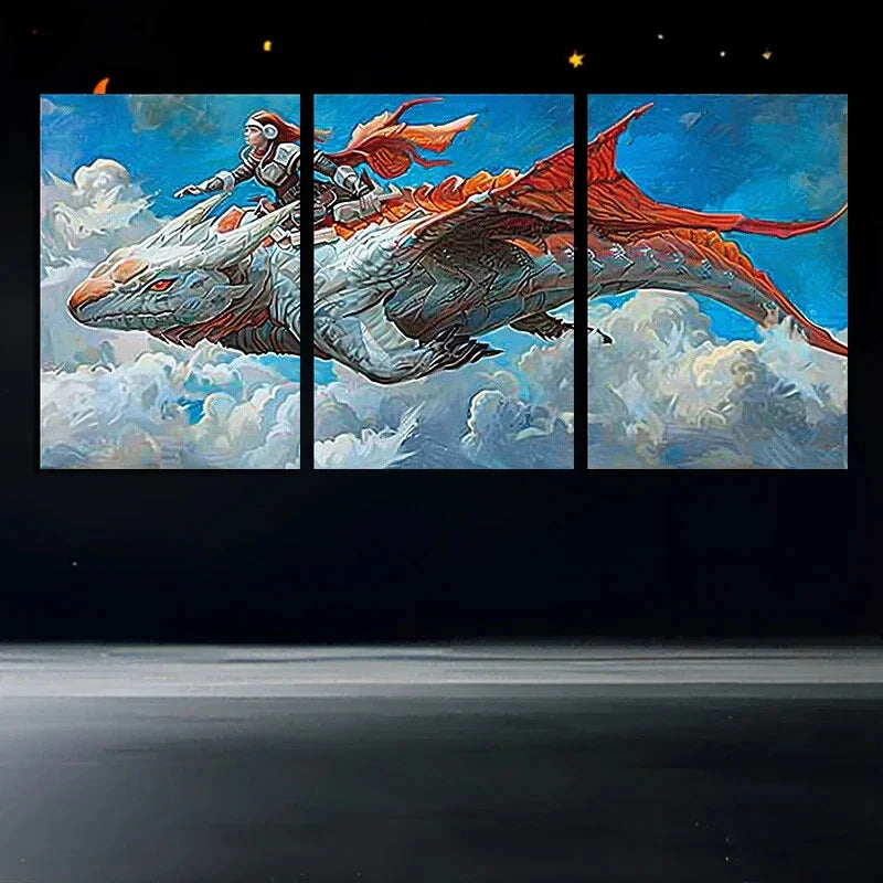 3pcs Dragon Knight Red & White Metal Print Ready to Hang Art
