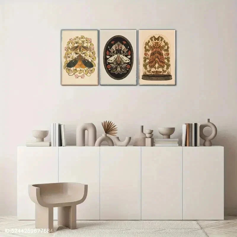 3pcs Dragonfly Moth Insect Floral Art Print Metal Print Ready to Hang Art