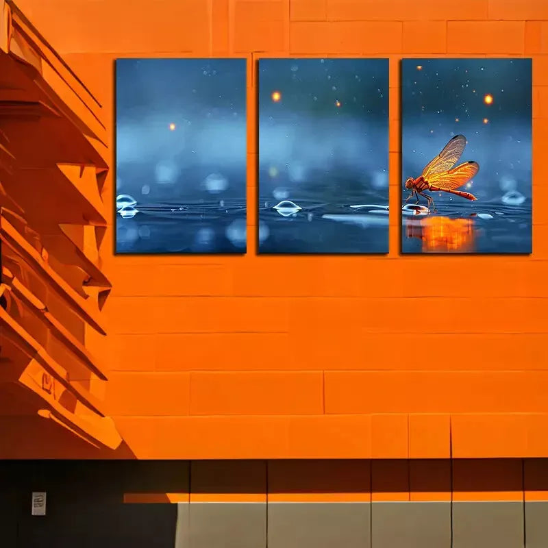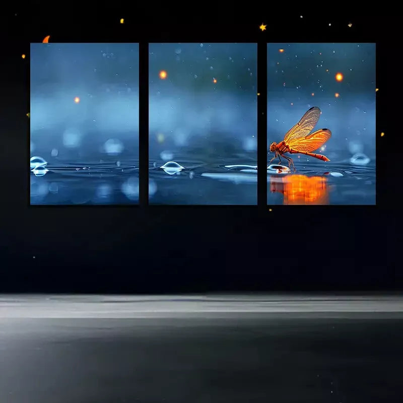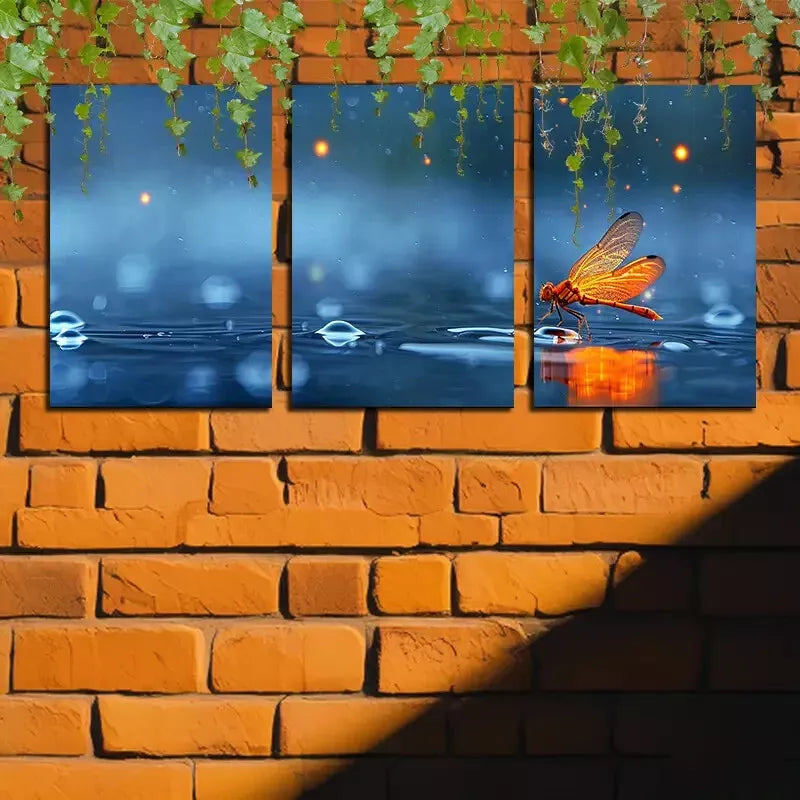 3pcs Dragonfly Over A Puddle Of Water Canvas Framed 40x60cm - High Quality Print 100% Australian Made Wall Canvas Ready to Hang