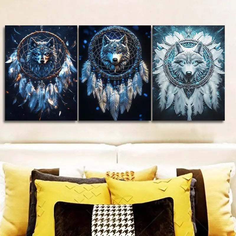 3pcs Dreamcatcher Wolf Metal Print Ready to Hang Art