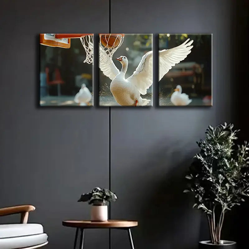 3pcs Ducks Playing Basketball Metal Print Ready to Hang Art