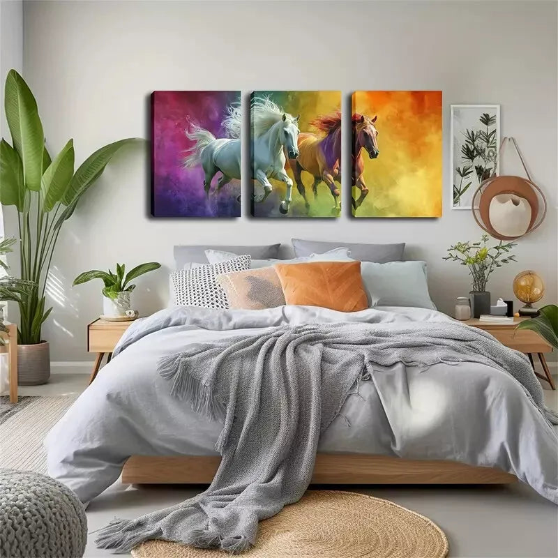 3pcs Dynamic Horse Designs in Purple, Blue Wall Art Set Canvas Framed 40x60cm - High Quality Print 100% Australian Made Wall Canvas Ready to Hang