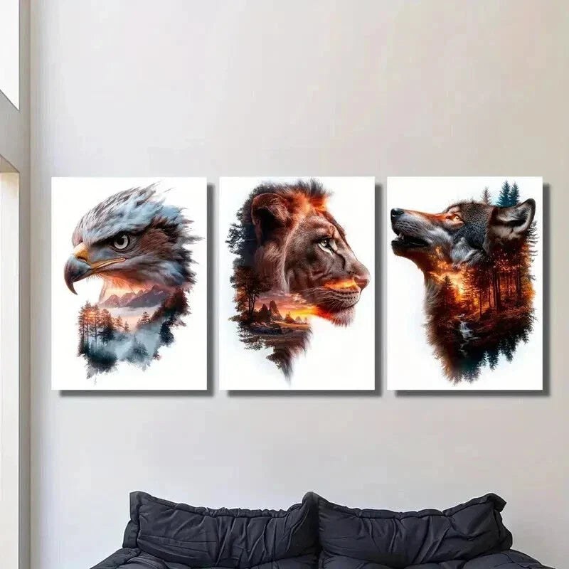 3pcs Eagle Lion Wolf Portraits and Nature Wall Art Set Canvas Framed 40x60cm - High Quality Print 100% Australian Made Wall Canvas Ready to Hang