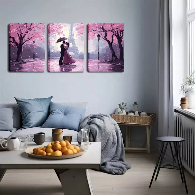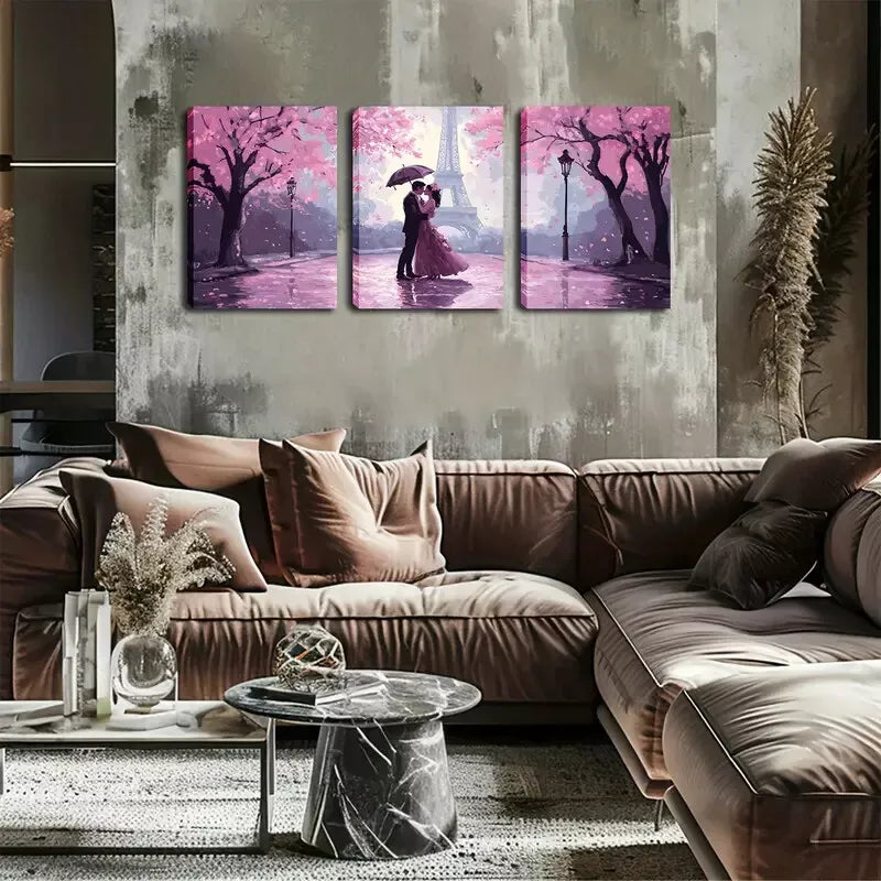 3pcs Eiffel Tower, Cherry Blossoms, and Pink Wall Art Set Canvas Framed 40x60cm - High Quality Print 100% Australian Made Wall Canvas Ready to Hang